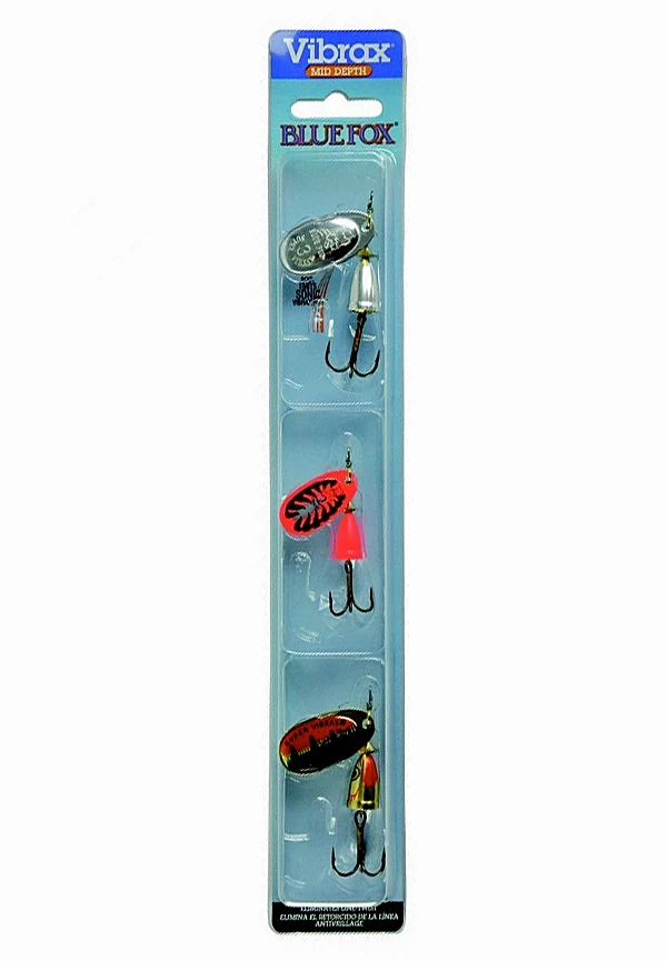 Blue Fox Vibrax spinners may just be the most famous spinners on the market. Pike, perch, zander, trout: very few predators can resist this classic lure. With the Blue Fox Kit Vibrax you will receive 3 spinners and there are 5 different kits available. The brass blade features different patterns and colours and rotates very smoothly while eliminating line twist. Just a bit of sunlight is enough to create lots of flash underwater which is a real trigger for lots of predators.