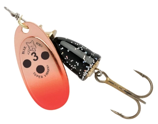 Vibrax Flake is a variant of the Original with silver flakes in the painting for extra visibility in the water.The patented two-part body emits low-frequency sound vibrations that attract fish and trigger strikes while virtually eliminating line twist.• Machined brass• Silver or copper plated• Painted and printed finishes• Rattles when rubbing against the bell• Free turning• Stainless steel shaft• VMS Hook, extremely sharp for quick penetration, perfectly tempered for strength