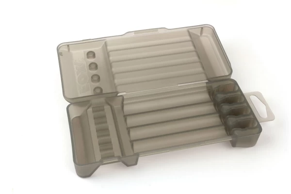The Fox Black Label Mini Swinger Presentation Case provides space to store 4 Black label Mini Swingers. This storage box provides the perfect storage and transportation solution for your Mini Swingers. This storage case is semi-transparent and made of hard plastic. It comes without Mini Swingers. The storage box that should not be missing from your Mini Swingers from Fox!