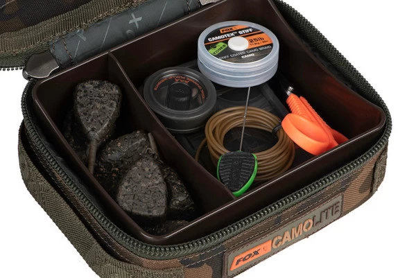 The Fox Camolite Rigid Lead & Bits Bag is a compact and extremely useful accessory bag which is made from water resistant 500D polyester with a PVC coating. The design is geared towards accommodating essential rigging materials and leads, whilst the compact design ensures that transportation in your other luggage is easily possible. For the serious carp angler who combines style, clear overview and quality at all times!