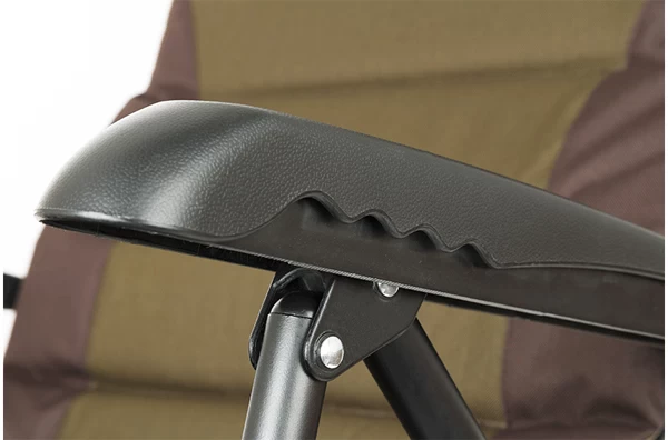 The Fox Eos 2 chair is the middle model of the EOS fishing chair range. It is a comfortable, spacious fishing chair with adjustable legs and hinged mud feet. The chair is easy to set up on a non flat surface and also easy to fold. The EOS 2 is available in a khaki colour scheme, with comfortable armrests and padded backrest. High seating comfort and perfect for a longer session!