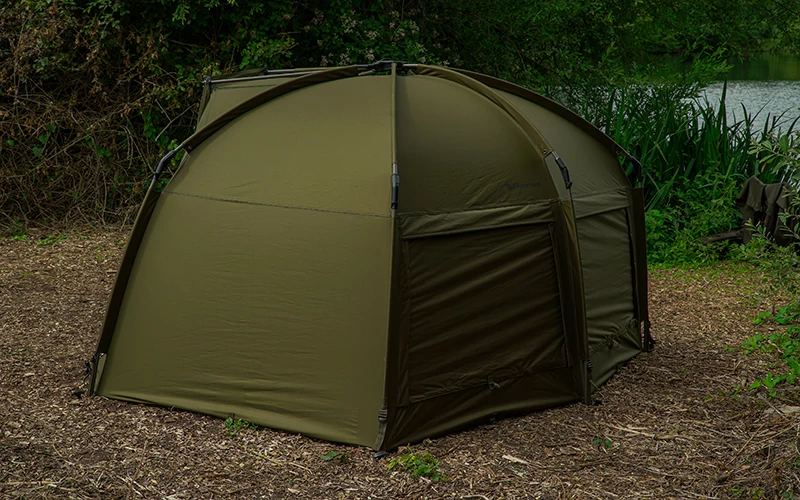 For 5 years, Fox has been working on the design of the ultimate bivvy, with the Frontier as a result! This bivvy uses a unique system which allows the bivvy to be set up and packed away extremely quickly. The improved shape of the aluminum frame creates more usable space than ever before in bivvies of this type. The Frontier also features all sorts of useful specs for the discerning fisher, such as ventilation vents, storage compartments, various door options, a groundsheet, and much more! Due to the use of proven Ven-Tec fabric, the Fox Frontier Bivvy is extremely reliable and looks great too!