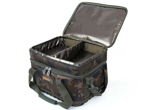 The Fox Low Level Coolbag is a high quality Fox Low Level bag that is made with strong polyester, a reinforced bottom and heavy-duty zippers. In addition, the bags have an EVA handle and padded shoulder straps for comfort. The bags have a camouflage pattern. The Low Level bags are made so that they can be easily slid under the bedchair, so they are not in the way. With the Coolbag, both the main compartment and the upper compartment are insulated with a removable layer, which is handy, because during cold or hot weather the bait / food or your own consumption will remain good here!