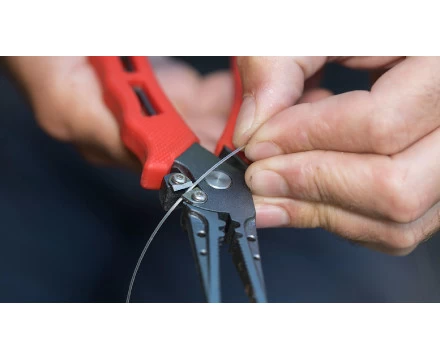These Belt pliers from Fox Rage come in a handy holster with lanyard to easily fasten it to your belt. With this you always have your pliers within reach while fishing. You can of course use these pliers to unhook your catch, but they are also equipped with a clipper for your line, a claw for split rings and a notch to place crimps. Made of strong stainless steel with a serrated jaw. The ergonomic handle has a non-slip coating to safely cut and release even with wet hands. A very handy accessory for the angler on the move.