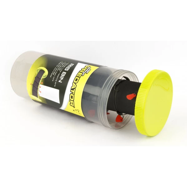 Sometimes storing your predator fishing leaders can be an unmitigated disaster. Due to large trebles, long dimensions and bait flags, ‘standard’ rig boxes are often not an option. Fox has come up with a clever solution: the Fox Rage Predator Rig Bin. The Rig Bin is a waterproof tube containing a separate storage cylinder.