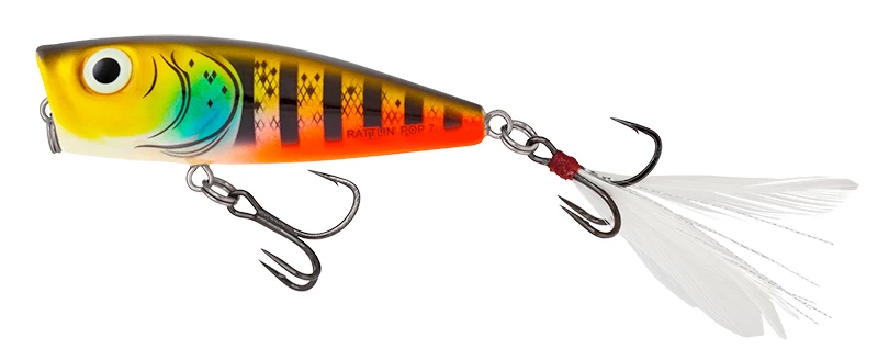 Poppers have long been an important lure in the world of predatory fishing. The new Salmo Rattlin’ Pop combines old-fashioned craftsmanship and new technology, resulting in a true fish-catching machine. True Image Technology, internal rattles, Mustad KVD Triple Grip Hooks, feathered tail hook: this lure has the tools that will help you catch more fish!