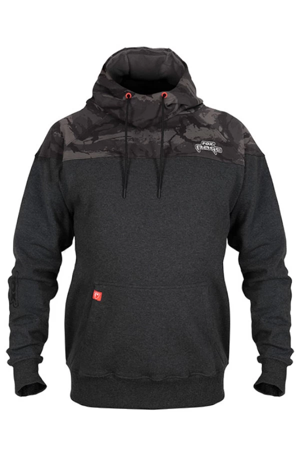 This Snoody by Fox Rage has a specially designed high neckline to protect your face when fishing in rain, wind and bright sunshine. The elastic cuffs and waistband ensure a good and comfortable fit. The handy kangaroo pocket on the front is ideal for storing small items like your mobile phone. The shoulder section has a camouflage print and the hoodie is finished with red details.