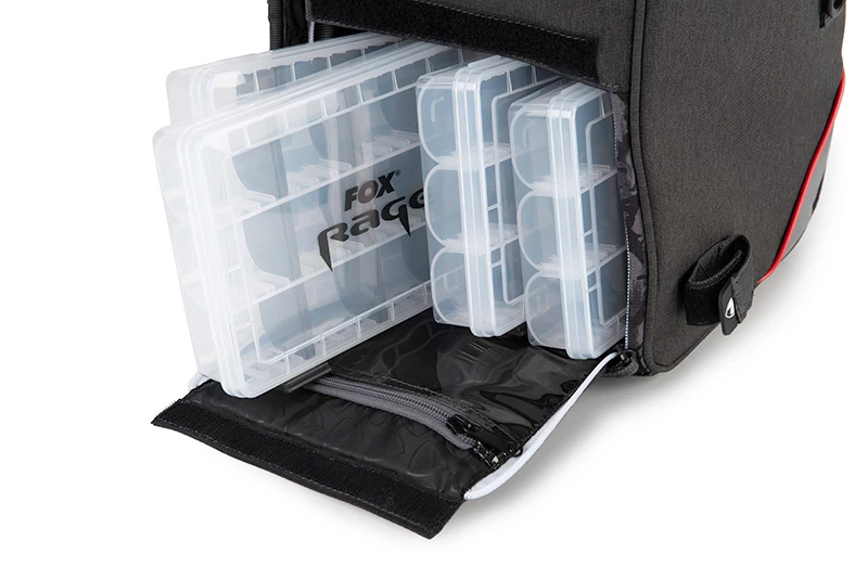 The new Street Fighter Backpack from Fox Rage is the ultimate backpack for street fishing! This backpack is characterized by its design with two main compartments, one accessible from the top and one accessible from the side. This eliminates the need to empty your entire backpack when looking for any of your items. The bottom compartment perfectly accommodates the four included lure/accessories boxes. In addition, the backpack features rod holders on the back and a holder for your sunglasses and unhooking pliers on the shoulder straps. The backpack is finished with a waterproof bottom and robust zippers.