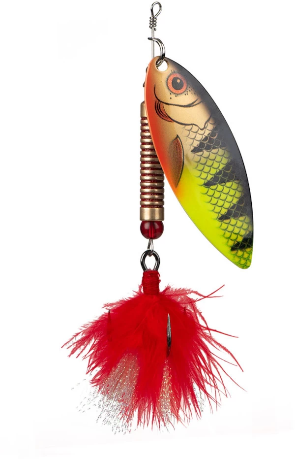The Fox Rage Ultra UV Spinner is a classic spinner equipped with modern features and UV reactive colour patterns. The silver finish on the inside of the spinner produces bright flashes to imitate a wounded baitfish, while the razor-sharp VMC treble will work well with any bait presentation. The often forgotten spinner still makes the difference in difficult conditions and will continue to break the records, especially when hunting big perch and pike!