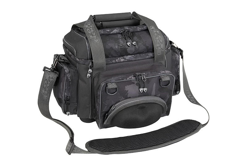 The Fox Rage Voyager Camo Carryall is a complete carryall that comes with 4 Medium Shallow Tackle Boxes and 1 Small Tackle Box. The bag features the Fox Rage Camo print giving it a neat dark finish. The 3D padded shoulder straps make it very comfortable to carry. It also has a sturdy storage area in the front for your sunglasses. The top has an EVA handle, so you can easily take it in your hand when loading or unloading. The bottom is made entirely of hard EVA, so you can set it down and not worry about it getting wet. Also, the carryall features a pull-out rain cover, so you can keep your gear dry even in severe weather. The exterior has both velcro pliers holders, a tool holder with spring coil and a D-ring storage that can be used with the Camo Voyager Mat. In short, a must-have for the serious lure angler and one of the most complete predatory fish carryalls available today!
